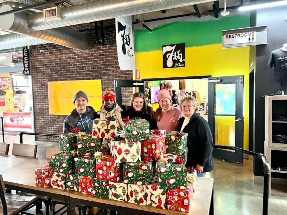All of the moving pieces of this event finally came together on the 18th when six volunteers joined together at the Northside Marketplace in Akron to pack, wrap and distribute all of the gifts to the houseless community in Akron. In addition to the gifts, we served hot chocolate and cookies and handed out bags of chips and pairs of socks that were donated to this cause.